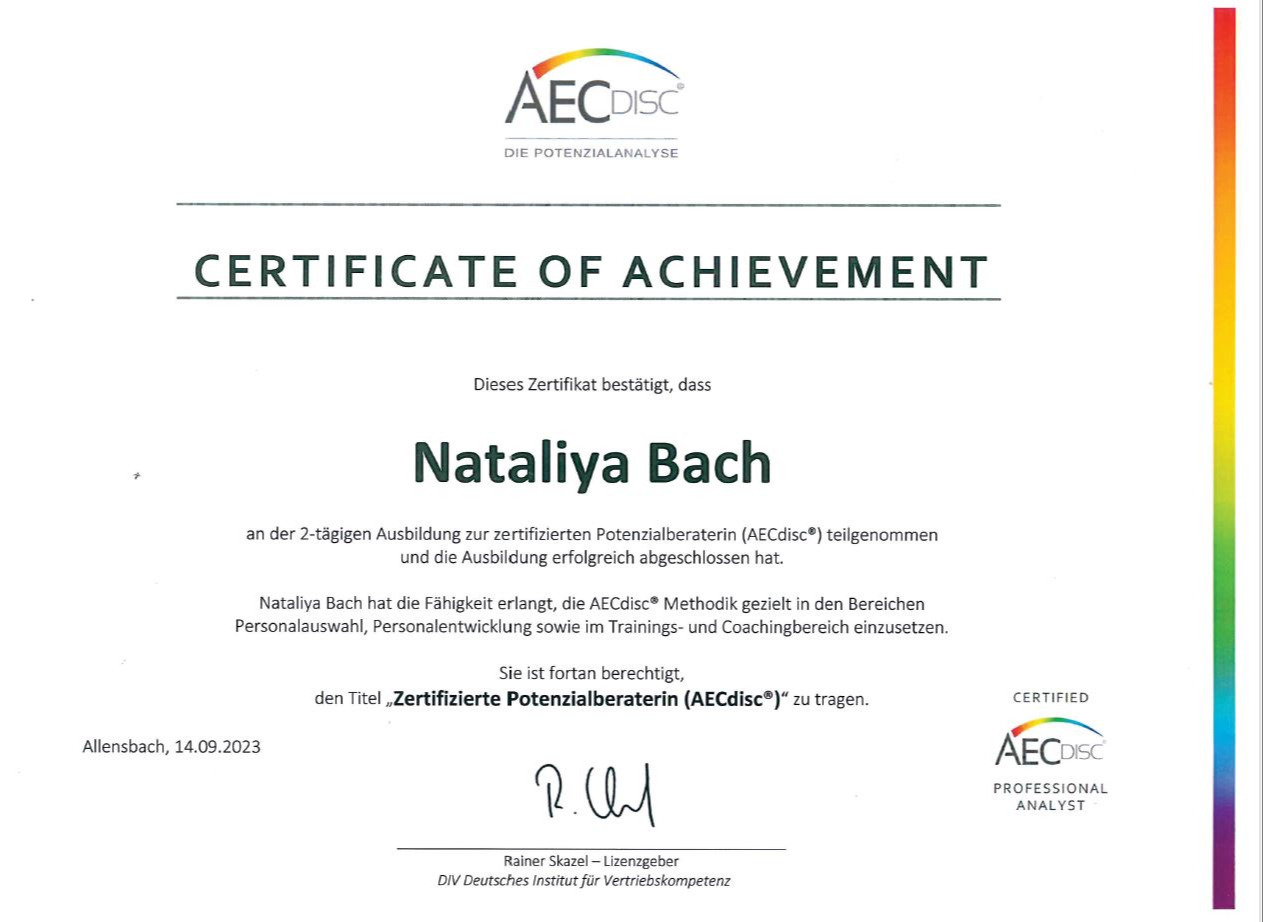Nataliya Bach war diejenige, die für mich "die Zauberwelt", wo Menschen ihre eigene Realität kreieren, geöffnet hat. Sie tat es sehr behutsam und sachte, indem sie mir Schritt für Schritt einfache, aber sehr wirksame Methoden gab, die ich im Alltag nutze. Nataliya Bach erklärt, lehrt und beatwortet nicht nur die lebenswichtigen Fragen, sondern lebt auch nach diesen Prinzipien und lernt immer weiter – das erzeugt Sympathie und offene, vertrauensvolle Beziehung, was das wichtigste im Coaching ist.